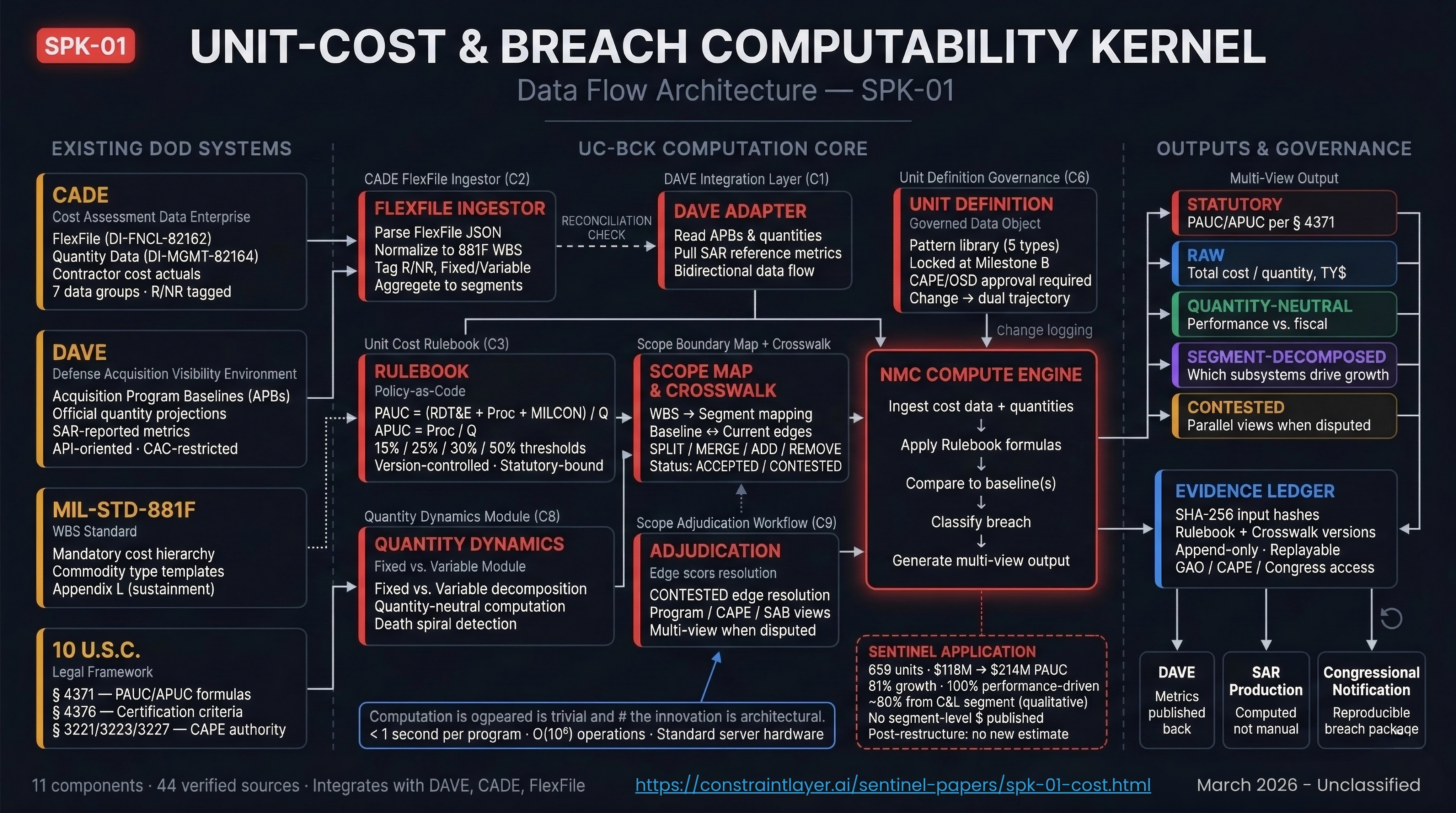 The Sentinel intercontinental ballistic missile program[2] triggered a cost breach indicating an 81% increase in unit cost.[1] Three structural gaps in cost accounting, baseline comparability, and computation reproducibility prevented stakeholders from detecting or contesting this breach until too late. A machine-readable, reproducible cost framework—UC-BCK—closes these gaps.